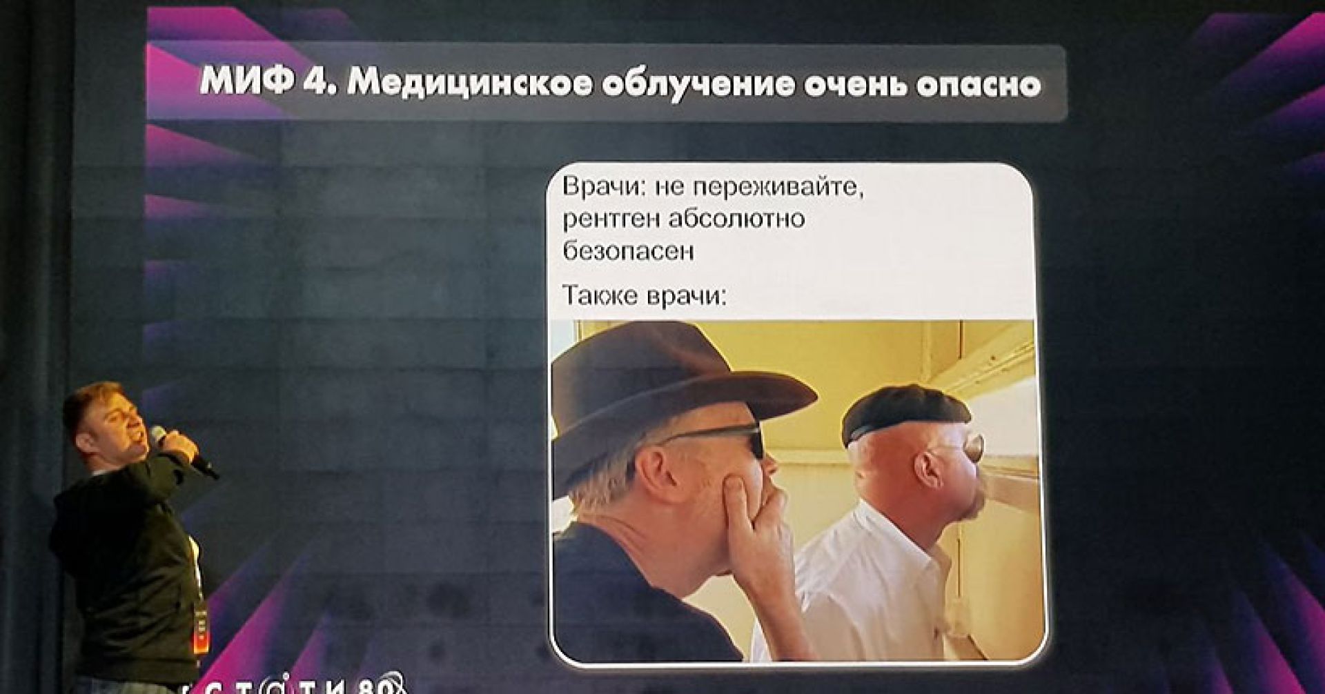 Лекцию «Мифы о радиации», собравшую полный зал в ККК имени Маяковского, прочитал и наглядно проиллюстрировал руководитель по направлению лицензирования АО «ГСПИ» госкорпорации «Росатом» Антон Грехов.