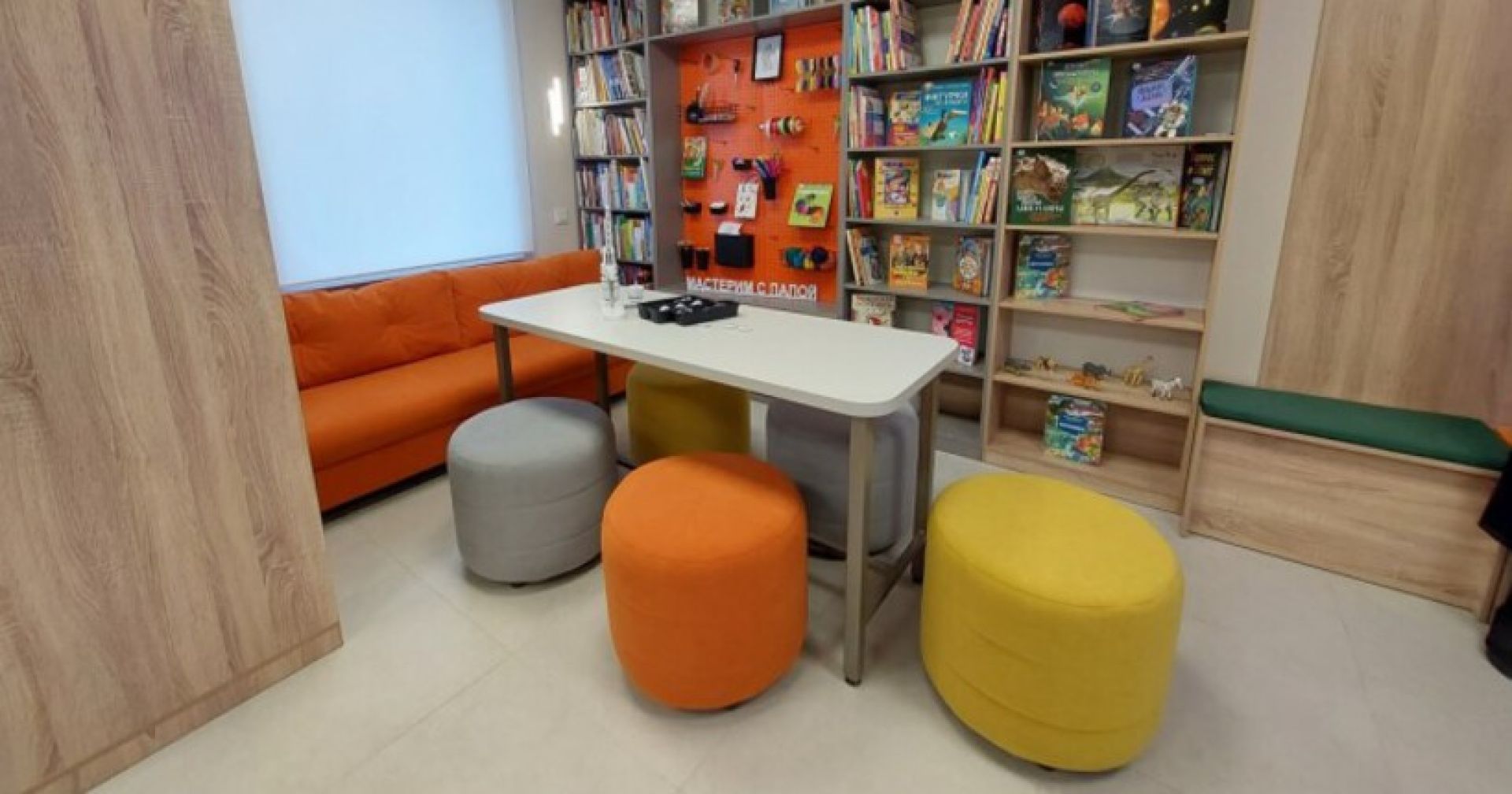 Особое внимание уделили созданию доступной среды для посетителей с ограниченными возможностями здоровья. Для них оборудовали пандус, систему вызова помощника и специализированный санузел. Также приобрели интерактивный стол и крупношрифтовые книги.