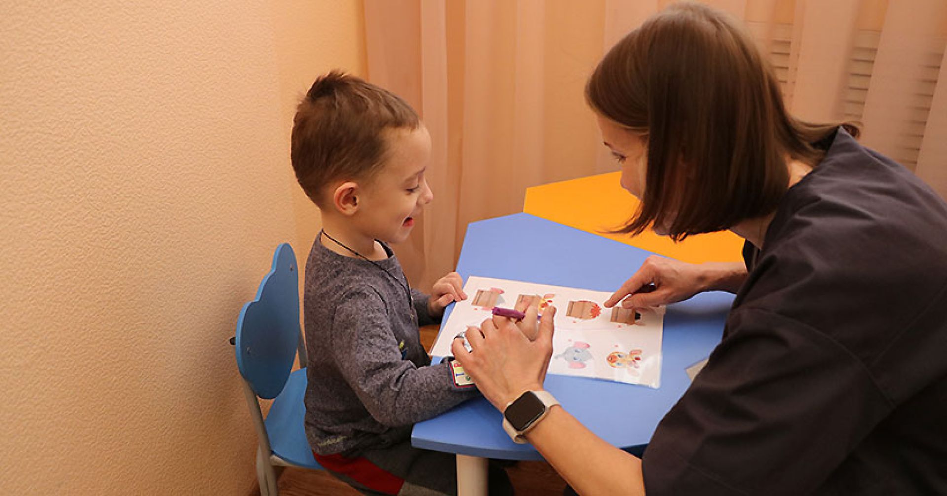 Елизавета Макарова с улыбкой наблюдает, как её сын Аркаша изучает окружающий мир с помощью развивающих игрушек, — мальчику явно по душе всё яркое и необычное! «Центр замечательный. Мы, как только пришли, Аркаша сразу же обрадовался. Начал всё трогать, изучать. Здесь очень красивый ремонт. Всё такое дружелюбное для детей. Очень удобное», — говорит мама. В Заельцовском районе Новосибирска открылось новое отделение реабилитации детей с ОВЗ: центр «Морской залив» расширяет возможности ранней помощи.
