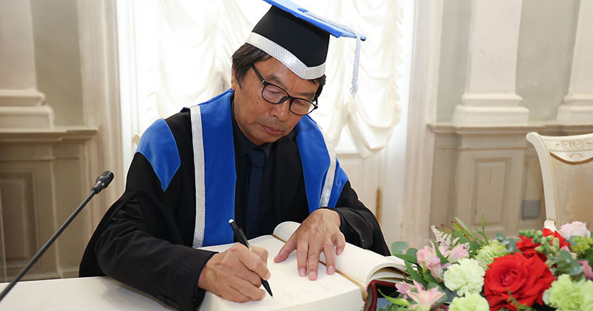 — В этом году у меня вышел новый роман «Солёные шутки». Почему я назвал его именно так? Один из читателей дал очень точное объяснение: потому что слёзы солёные, и когда проглатываешь шутку вместе со слезами, то шутка просаливается ими насквозь. От Алексея Родионова я слышал, что в России тоже есть выражение «солёные шутки», но с несколько другим значением. В настоящее время как раз идёт перевод этой книги на русский язык. Её выпуском займётся издательство «Гиперион», и в будущем она встретится с российскими читателями. Я с нетерпением жду отзывов из России. В этой книге упоминается просветлённый монах эпохи Южной Сун по имени Умэнь Хуэйкай. В своё время он написал такое стихотворение: «Весною радуют цветы, а осенью — луна/Летом — ветерок прохладный, а зимой — снега/Когда на сердце нет пустых тревог/