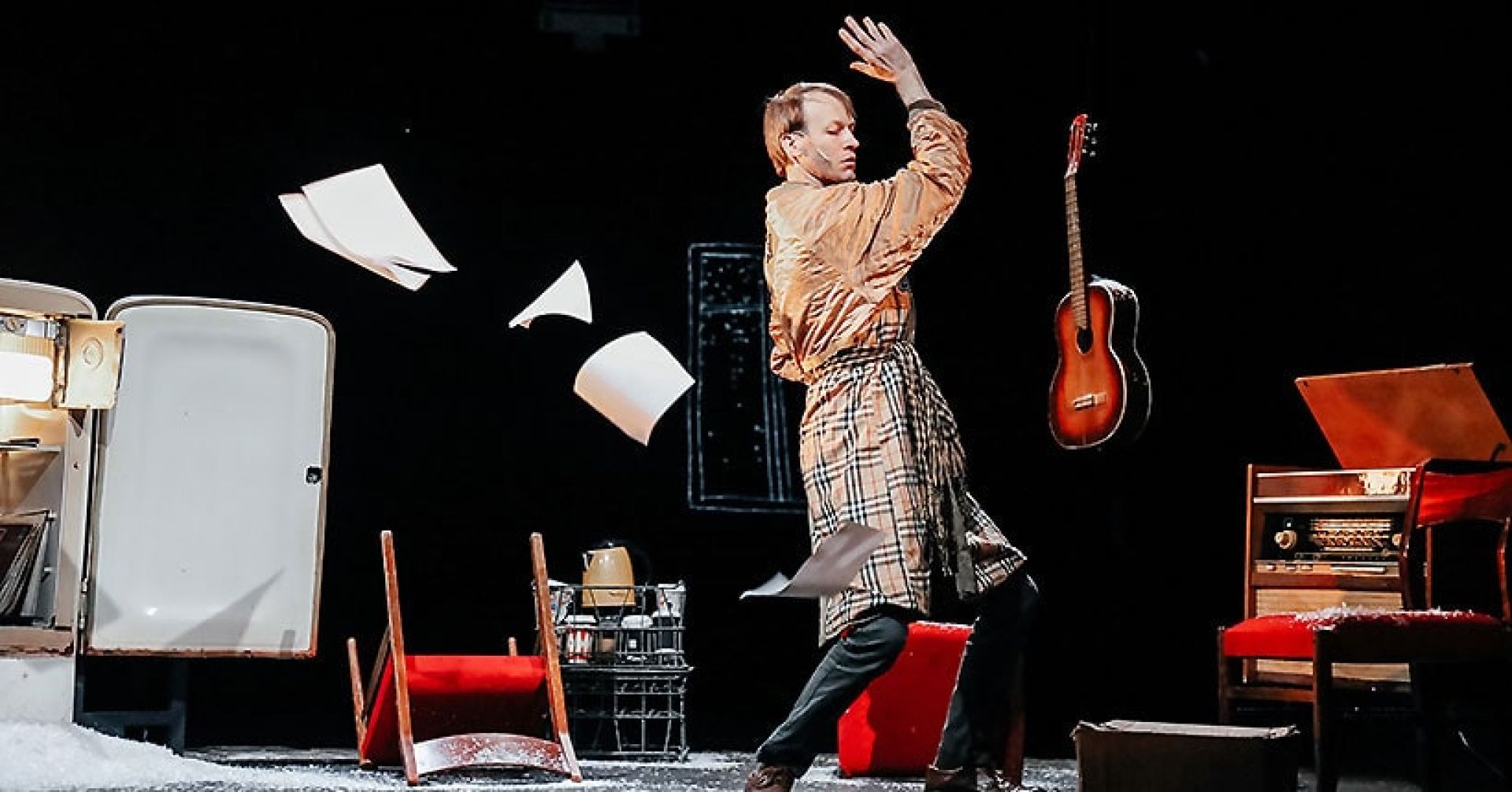 Спектакль «Шинель» театра «Место» открыл фестиваль, заставив зрителя вместе с Акакием Башмачкиным бродить на длинных ногах по занесённому снегом инфернальному Петербургу в поисках своей новой личины. В постановке «Это не я» (между прочим, одной из первых работ Фёдорова) продолжилось изучение «маленького человека» — застрявшего в своих пыльных фантазиях «коллективного интеллигента», идущего по ходульному пути существования, проторенному главными героями советских кинофильмов. Ему вечно бьют лицо «коллективные хулиганы», сепарация от матери терпит фиаско, он скучно изменяет жене с восторженной молоденькой дурочкой, и только вентилятор в его квартире подаёт признаки жизни, потому что ещё крутится. «Портрет» прошлого, которое давно умерло, но крепко растёт внутри нас. Что касается «Мадам Бовари», то история Эммочки, знакомая нам по скандальному роману Флобера, рассказывает о способности восторженной дамочки перенести себя с помощью любовных романов из тягучего быта «брежневской девятиэтажки» в условную Францию.