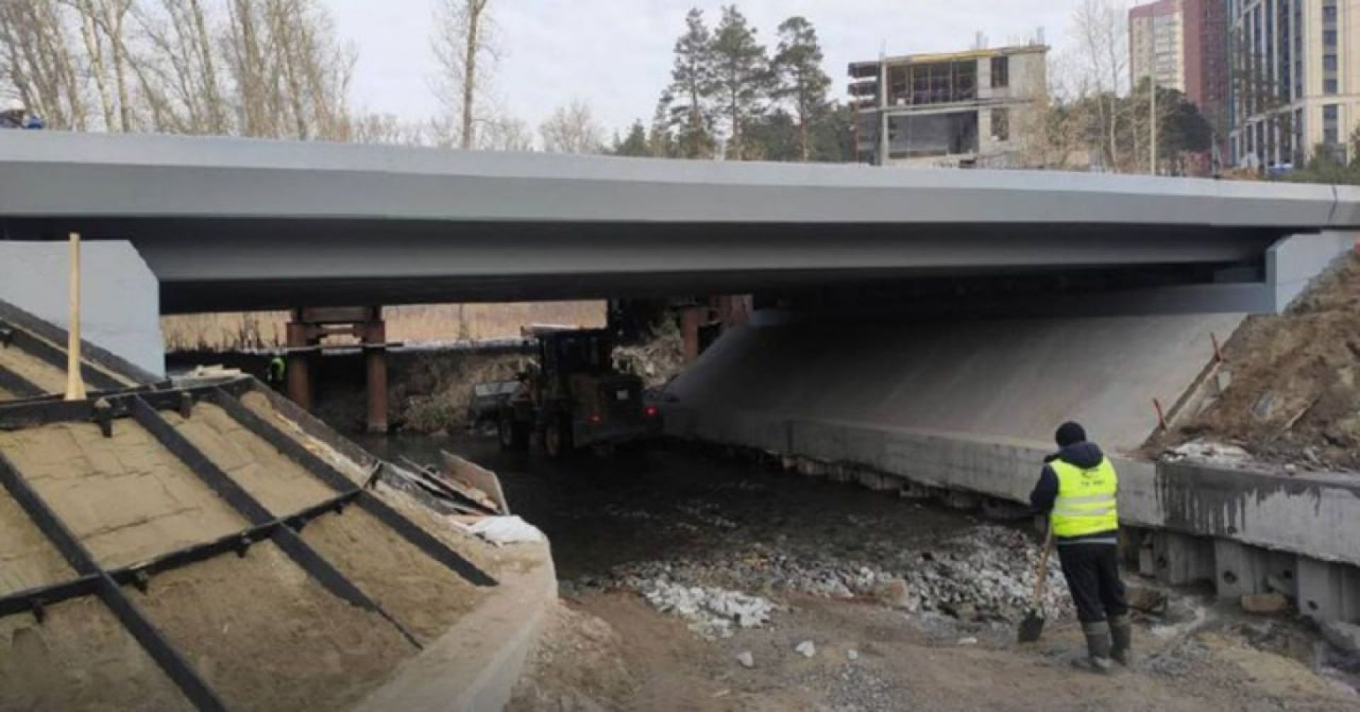 В ближайшее время подрядчик завершит демонтаж временного моста и благоустройство прилегающей территории.