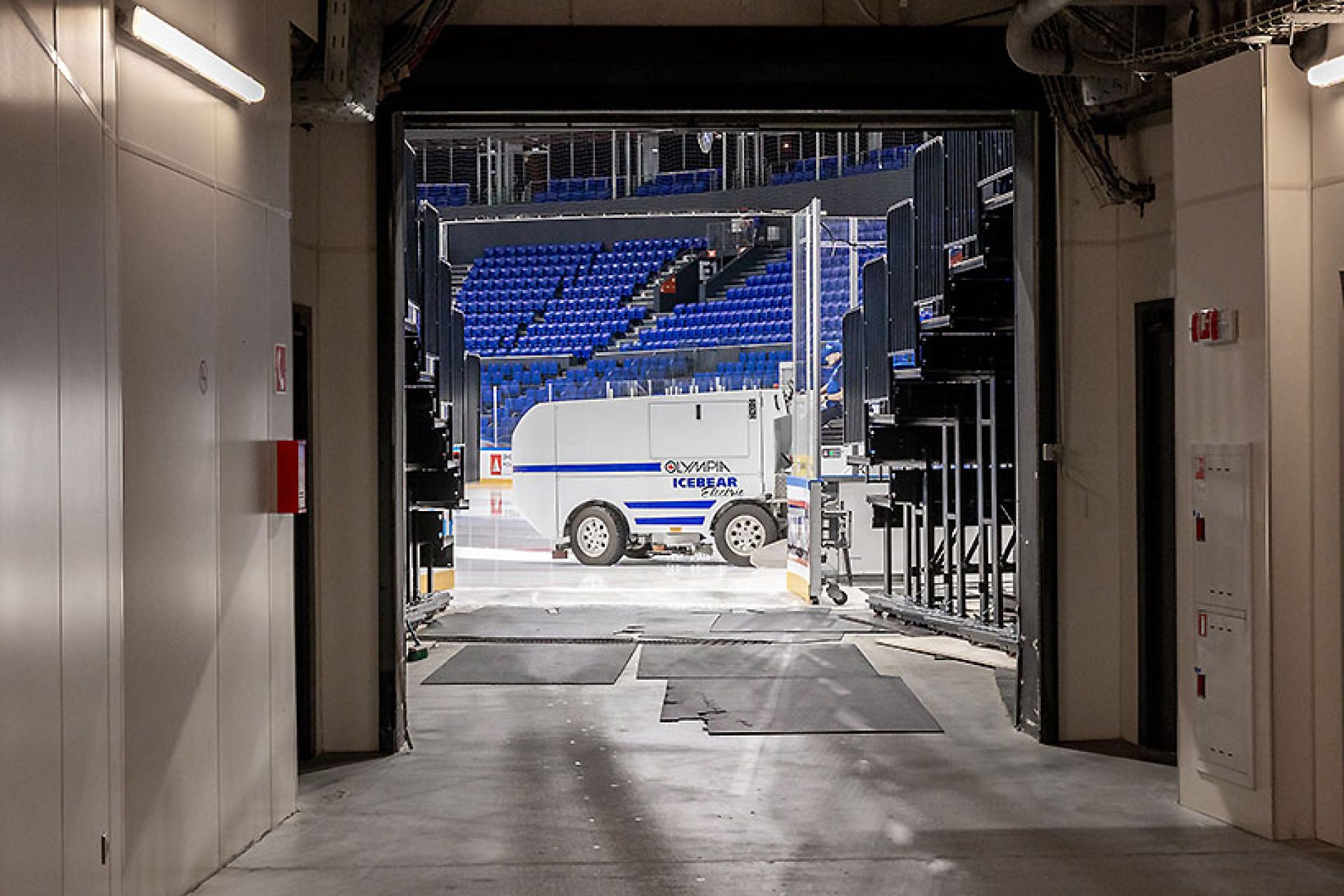 Экскурсия подразумевает и посещение гаража ледозаливочных машин — от их работы зависит качество льда на обеих ледовых чашах.