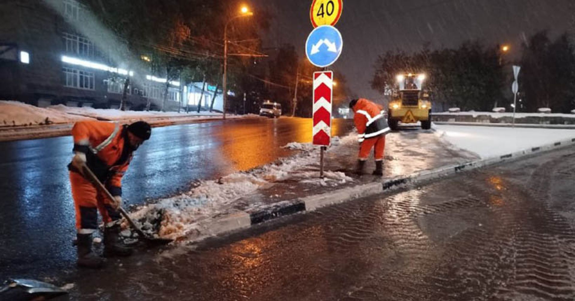 Снегоуборочные комплексы и дорожные рабочие работают в режиме продлённых смен без остановок движения общественного транспорта.