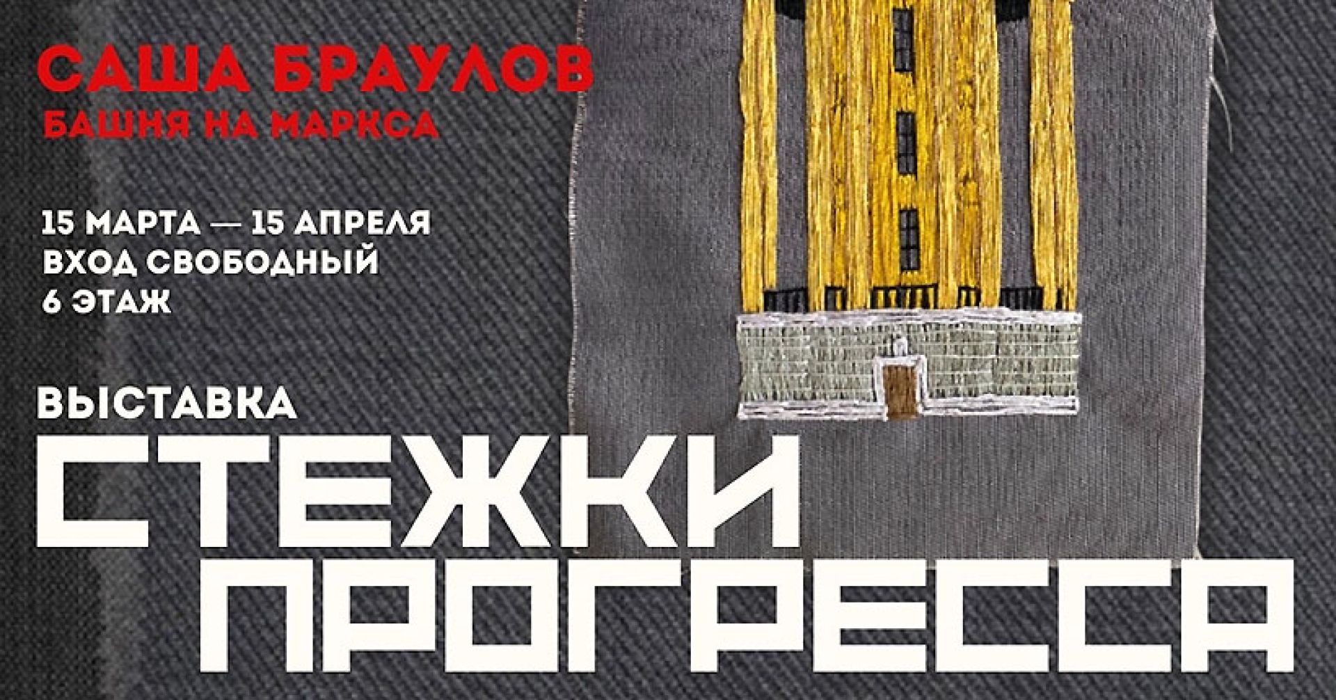 Персональная выставка художника из Санкт-Петербурга Саши Браулова («Ведомости» писали о нём в материале «Архитектурный стежок»). Саша более 9 лет работает над серией «Архитектура авангарда», вышивая здания эпохи конструктивизма — существующие, утраченные и оставшиеся только в виде чертежей. Всего он создал уже свыше 350 таких миниатюр, в Новосибирске будут представлены более 60 работ. В экспозицию вошли и известные объекты нашего города. Вход свободный. 12+