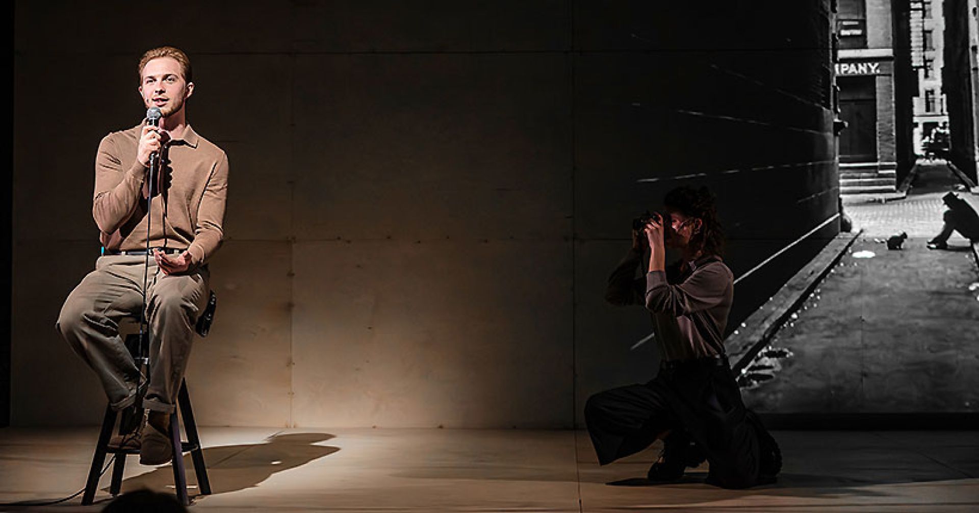 Спектакль построен по принципу аналоговой фотолаборатории, когда актёры пропускают через свою оптику-объектив экзистенциальный опыт великого мастера репортажной съёмки Анри Картье-Брессона, чтобы донести до зрителя далёкий отпечаток ушедшей реальности. Впрочем, Волкострелов, как профессиональный исследователь повседневности, намекает нам, что реальность всегда ускользает от нашего взора, особенно в эпоху самопрезентации и потребления, когда мы помещаем в центр мира только себя. Сегодня мы не рассматриваем тени на стене платоновской пещеры, сегодня мы сами — тени, которые проявляются в виде неявных изображений на старых фотокарточках. Собственно, на эту мысль работает минималистичная сценография, придуманная Волкостреловым: пустая сцена, проявочный экран, несколько микрофонов и пара стульев. И 36 фотографий Брессона, сделанных им в разные годы жизни, — люди, небо, города, улицы, живые и запечатлённые истории тех, кого уже давно нет на этом свете. Заросшая мхом лодка в болотах Ирландии. Мальчишка, улыбающийся солнцу. Сильные и нежные руки молодого мужчины. Человек, лежащий на тротуаре. Девочка в белом платье, летящая над дорогой. Уставшая Мэрилин Монро в гримёрке. И человек, зависший на бездной-лужей.