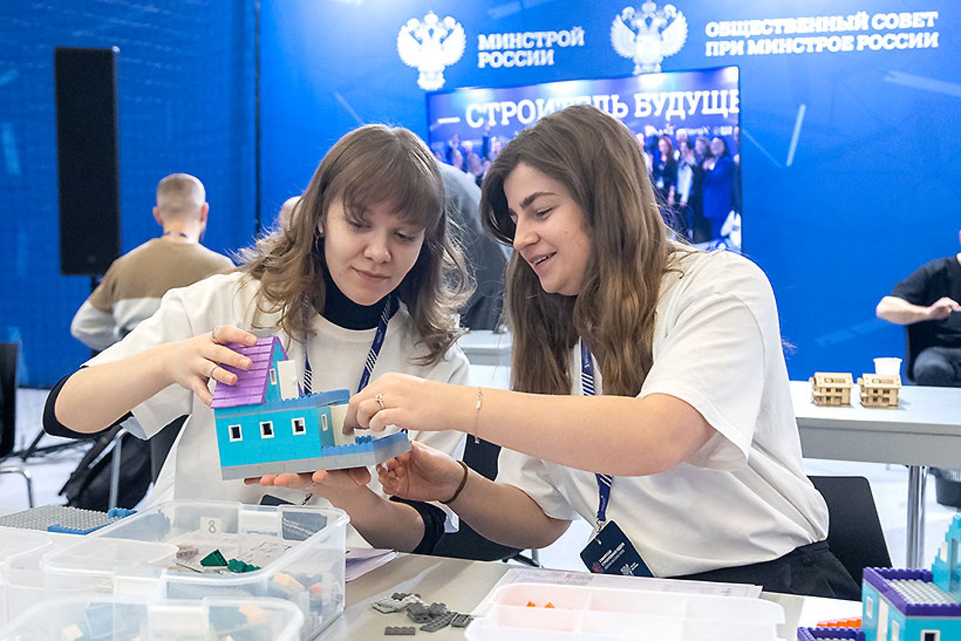 Работа кипела и на интерактивной площадке для школьников и студентов, которые не только погружались в процесс моделирования строительных конструкций, но и могли узнать о профессии строителя из первых рук.