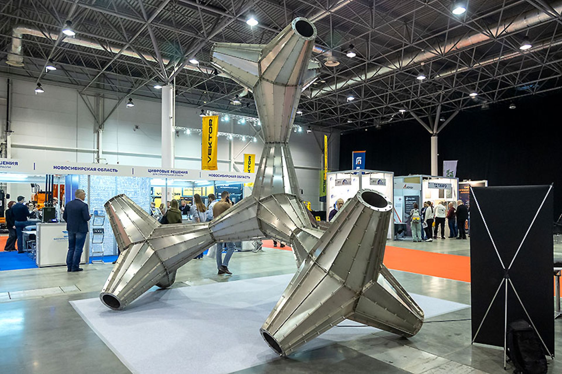Урбан-скульптура «Богомол», 800 кг нержавеющей стали (высота 4,2 метра) — специальный гость Сибирской строительной недели. Объект демонстрирует переход от статичных форм к «умным» структурам, способным реагировать на человека, среду и время, — именно этот вектор сегодня становится ключевым для индустрии.