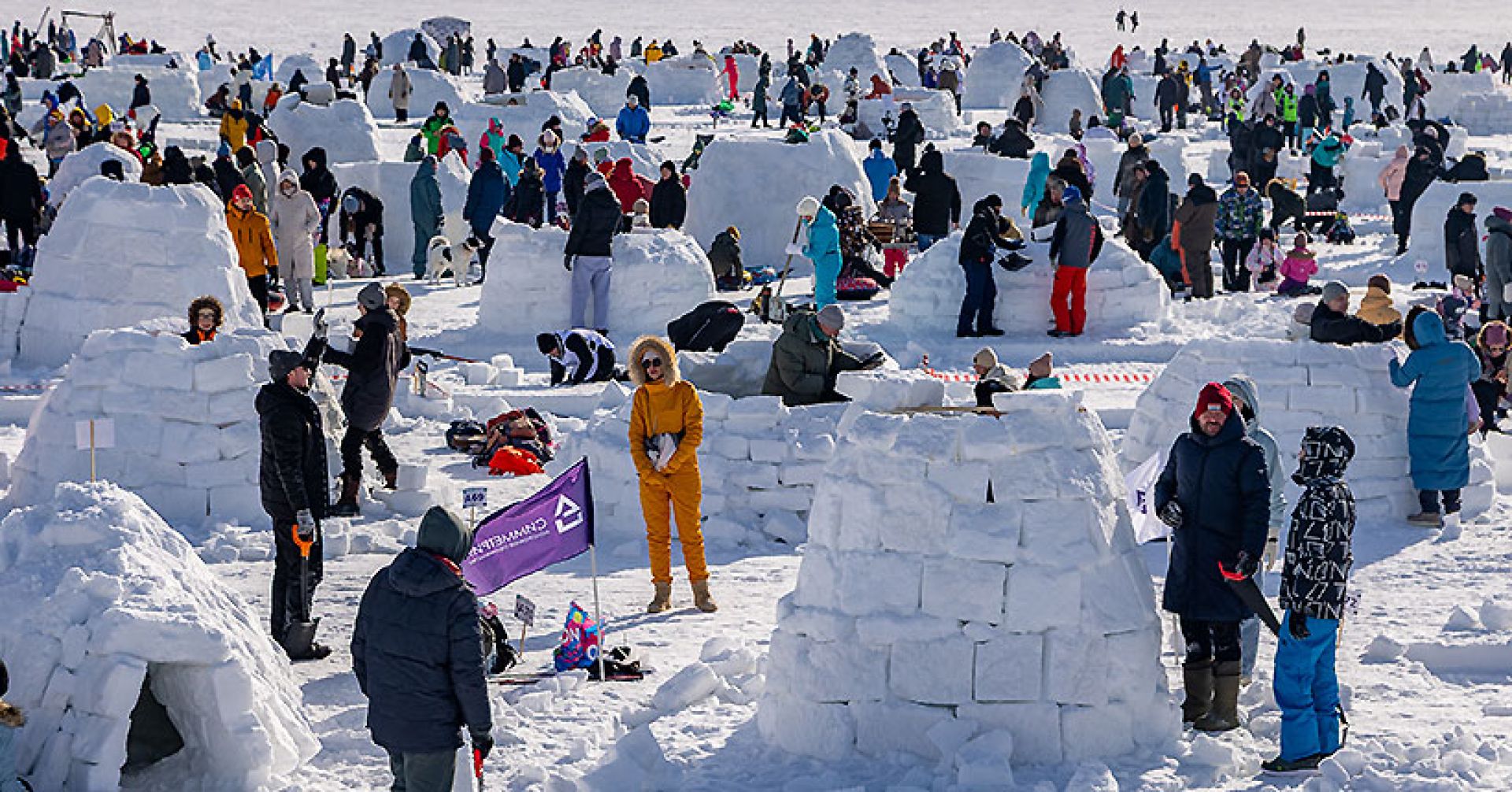 В числе номинаций этого года — самая быстрая постройка иглу, самое большое иглу, самое высокое иглу, корпоративное иглу (участвуют команды от организаций города), самые дружные соседи (самый большой кластер иглу), самое красивое иглу и другие. А за щели между выпиленными «кирпичами» начисляются штрафные баллы.