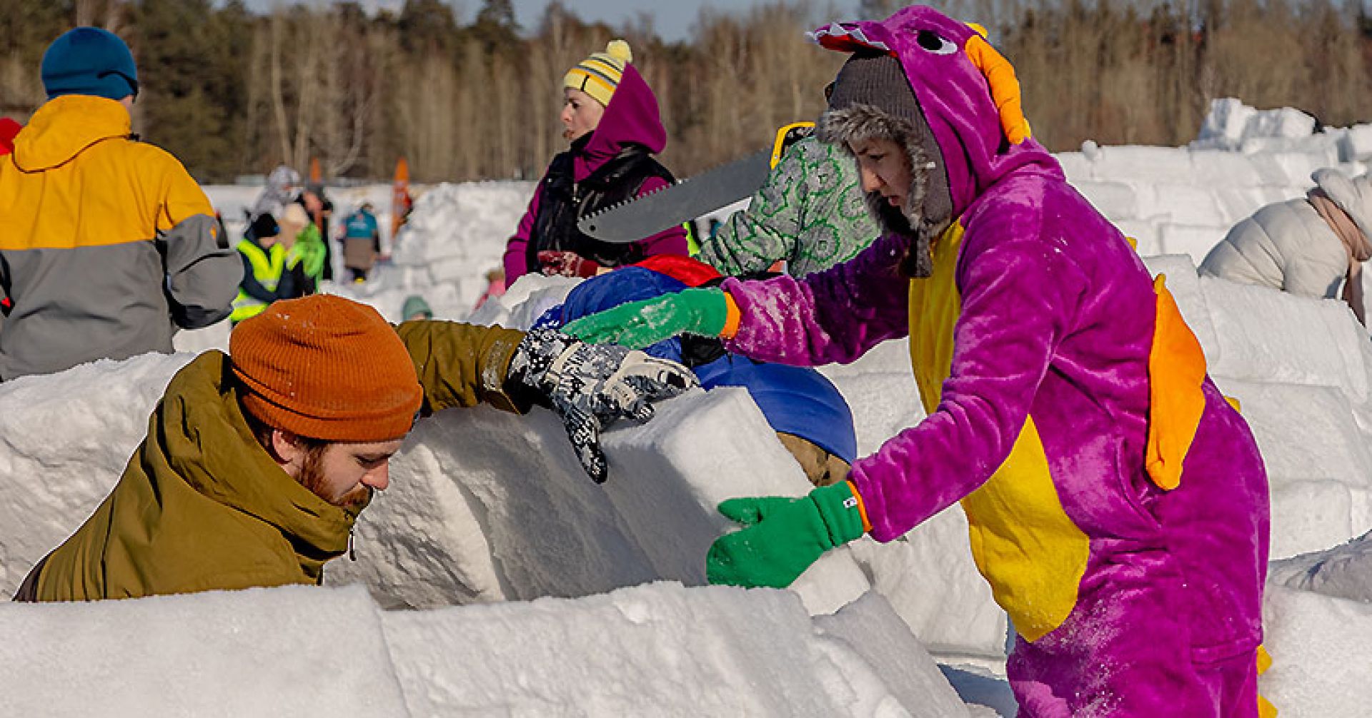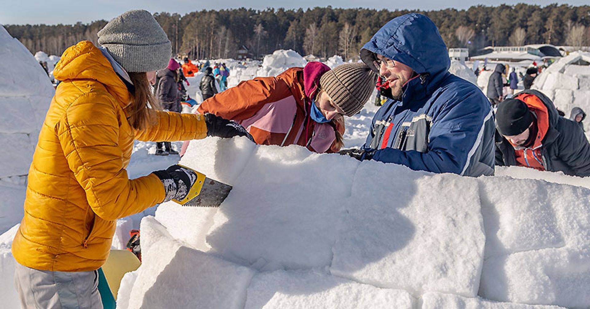 Пила, лопата, верёвка и тёплая одежда: строителями Города эскимосов в Новосибирске стали почти 4 тысяч человек