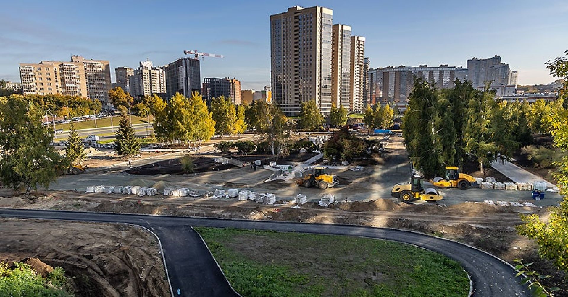 В строящемся парке Бугакова в центре Новосибирска началось масштабное озеленение