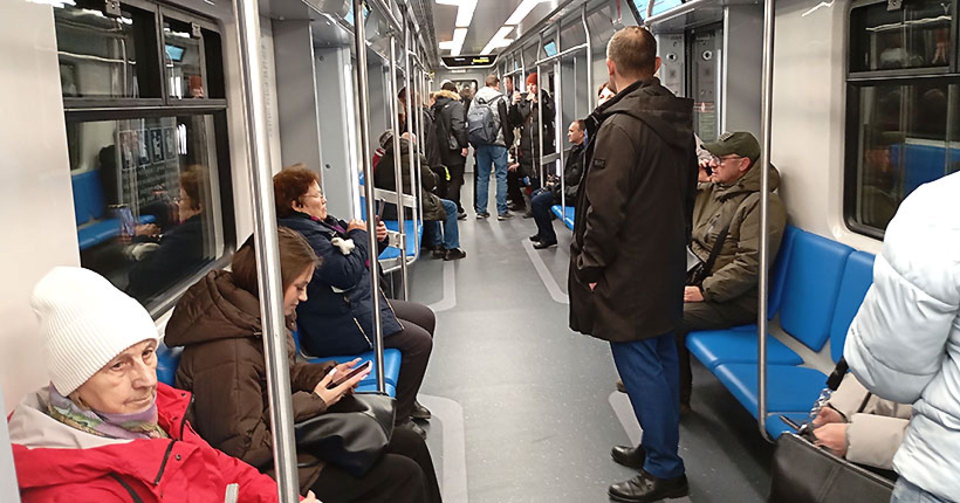 Примерно в 12:30 новый состав распахнул двери для своих первых пассажиров на станции «Площадь Ленина». По лицам первопроходцев и десяткам включённых камер на телефонах было видно, что новенький «Ермак» в ещё непривычной бело-синей ливрее произвёл на всех большое впечатление. Но внешний вид — это ещё полдела, внутреннее оснащение вагонов поражает не меньше.