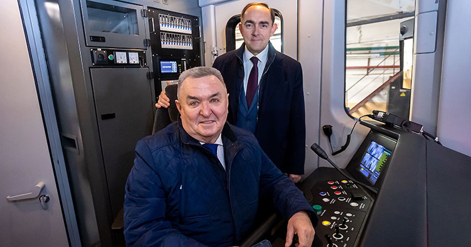 Председатель транспортного комитета заксобрания НСО Валерий Ильенко и министр транспорта и дорожного хозяйства региона Анатолий Костылевский оценили комфорт кабины машиниста.