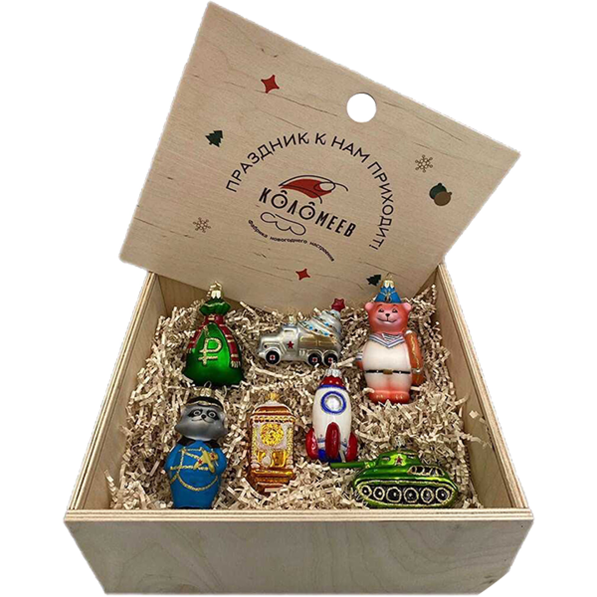 Фабрика «Коломеев» из Брянской области начала работать в 2009 году. Мастера фабрики уделяют особое внимание связи поколений и ежегодно выпускают коллекции классических советских игрушек, которые пользуются большим успехом среди покупателей. Среди нестареющей классики — сказочные герои, популярные в 1950-х, «съедобная» серия и часы, показывающие «без пяти двенадцать». Праздничный набор «Праздник Новый год 10» из семи стеклянных игрушек в подарочной деревянной упаковке обойдётся в 15 033 рубля. Отдельно «Щелкунчик» из сказки Гофмана — 1400 рублей, часики с шишками — 3000 рублей.