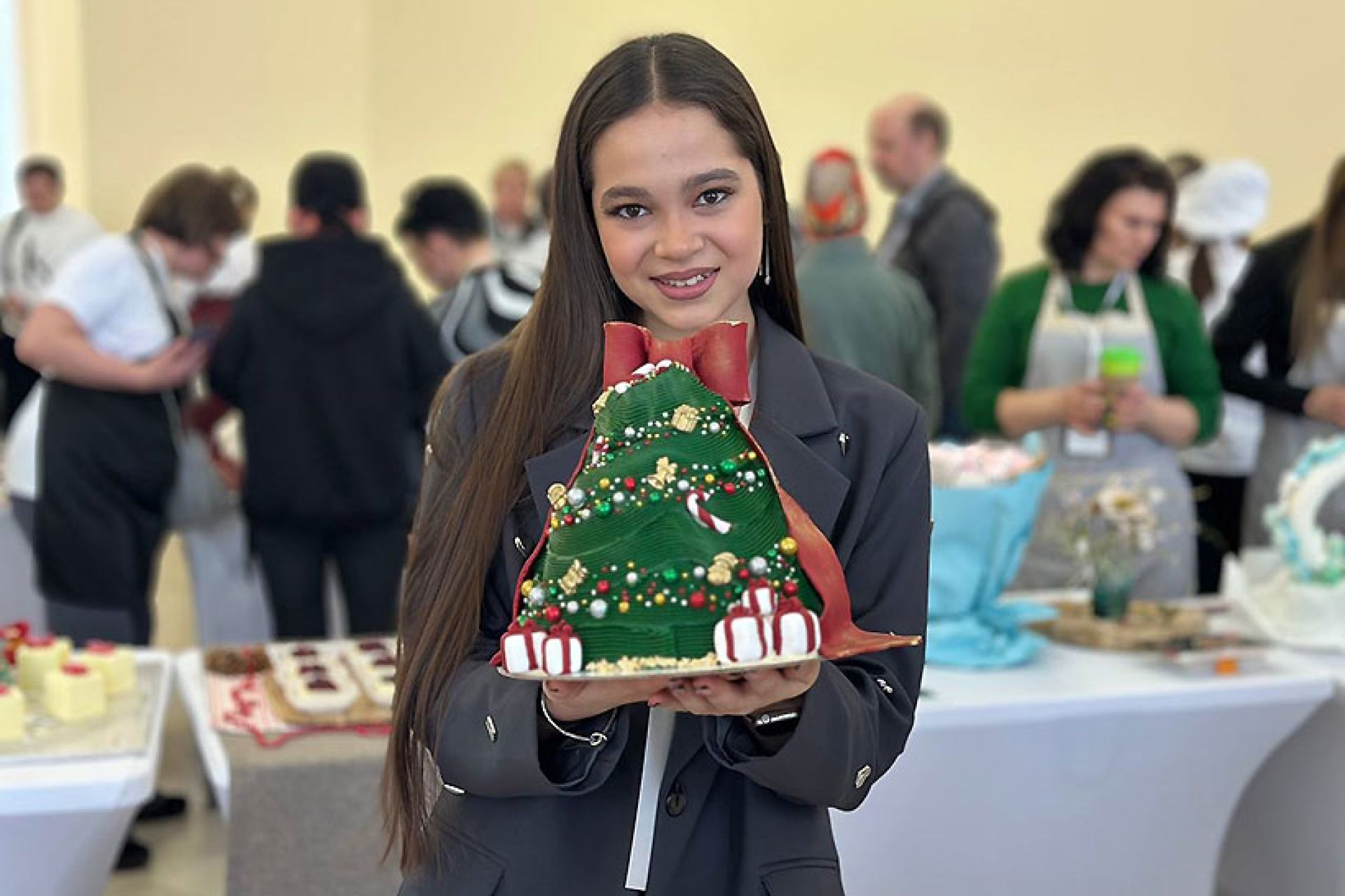 Преподаватель Бердского политехнического колледжа привезла огромный медовый торт «Ёлка желаний» со сливочным, сметанным и карамельным кремами, клубничным конфи. Себестоимость такого торта высока: и сливок, и высокожирной сметаны на него ушло более чем по литру. Не говоря уже о других ингредиентах.