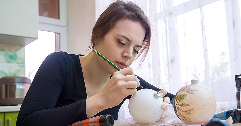 Вика расписывает новогодние шары — это и творчество, и способ заработать.