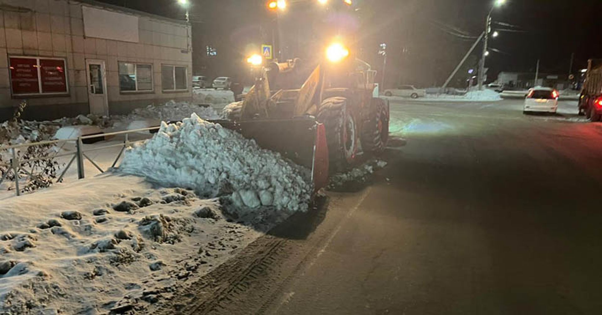 Работают пять подрядных организаций. От снега очищено 1127 км дорожной сети. Противогололёдными материалами обработано 2569 км дорог.