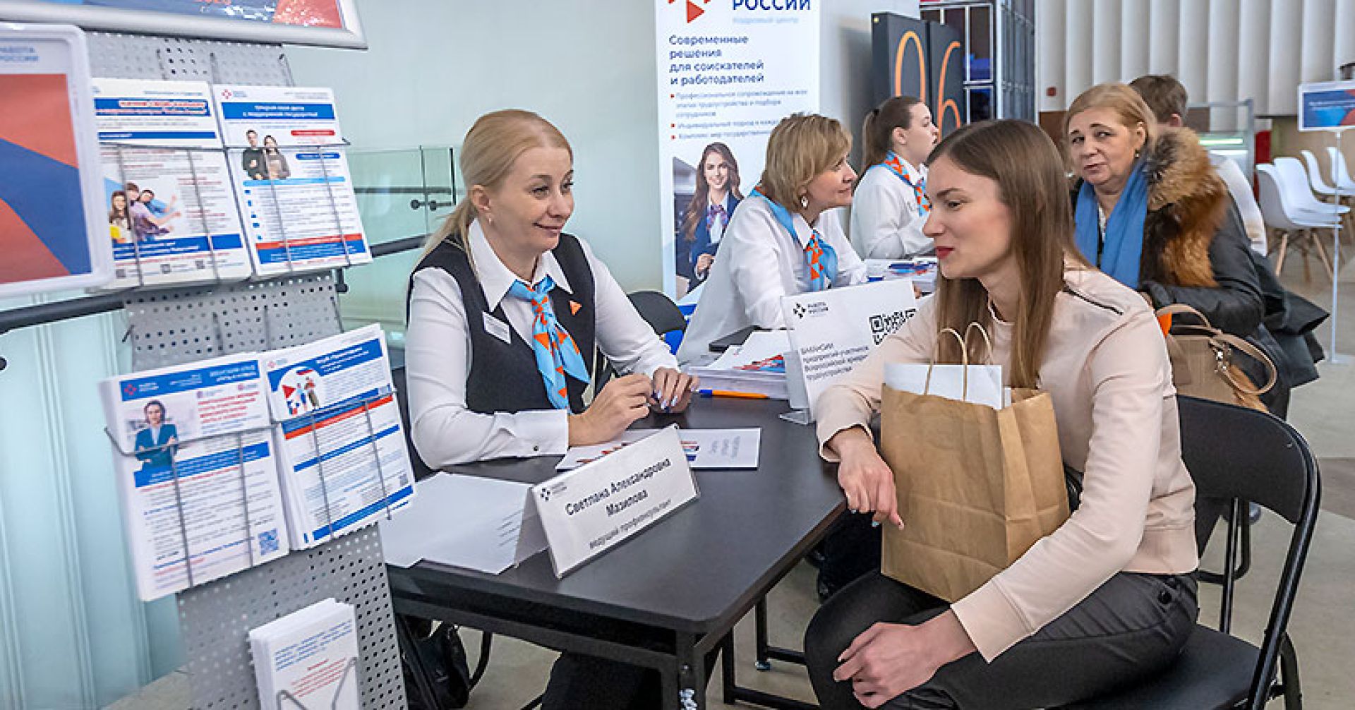 Сделать сердечно-лёгочную реанимацию, собрать микросхему или придумать концепцию мероприятия. Именно через действия, а не рассказы ищущие разбирались в вариантах для развития своей карьеры. Центральной площадкой ярмарки трудоустройства «Работа России. Время возможностей» стал молодёжный театр «Глобус». В этом году представители крупнейших компаний региона представили более 1 500 вакансий — от медицины и образования до горнодобывающей отрасли и силовых структур. Мероприятие было организовано Центром занятости населения Новосибирска при поддержке регионального министерства труда и социального развития.