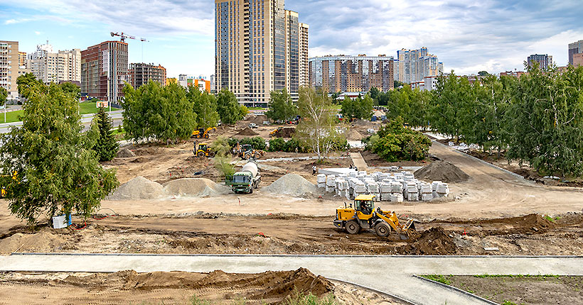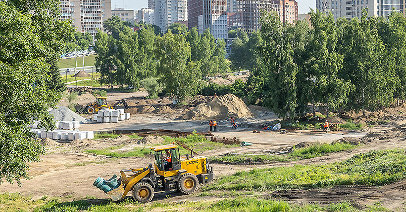 В строящемся парке Бугакова в центре Новосибирска началось масштабное озеленение