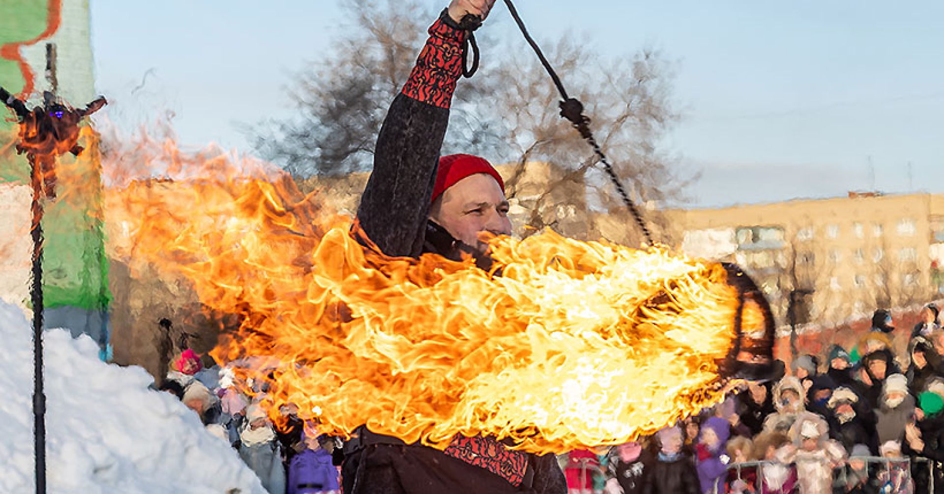 Одной из новых традиций в Новосибирске становится проведение фаер-шоу, разумеется, с соблюдением всех мер безопасности.