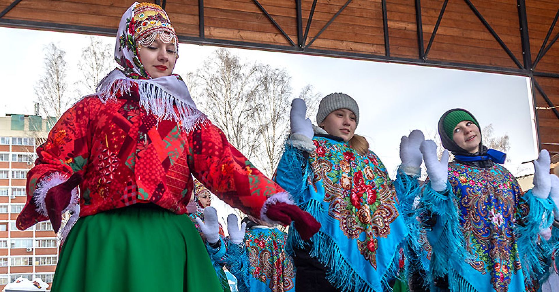 Здесь же в Затулинском парке был дан старт новой традиции: впервые прошёл флешмоб русских платков. Как рассказали организаторы, они давно обратили внимание, что на Масленицу горожанки, даже совсем юные, приходят в традиционных платках, например, павлопосадских. Поэтому и решили провести такую интересную танцевальную акцию.