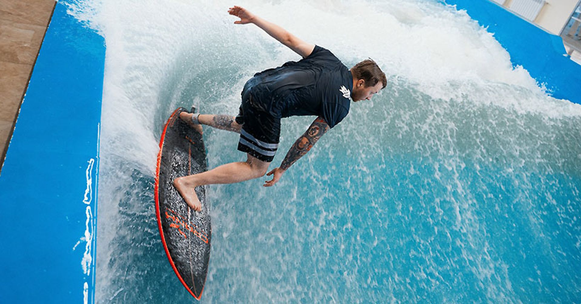 Сегодня устанавливают волновые бассейны — тренажёры с такой же динамикой, как и волны в океане. В бассейне производится толчок сзади, поднимается волна, а затем образуется стенка, по которой и может двигаться сёрфер. При этом можно регулировать скорость потока. Кататься на такой волне можно на обычных сёрфбордах, но опытные спортсмены выбирают доски с меньшим объёмом, поскольку здесь не нужно «разгребаться».