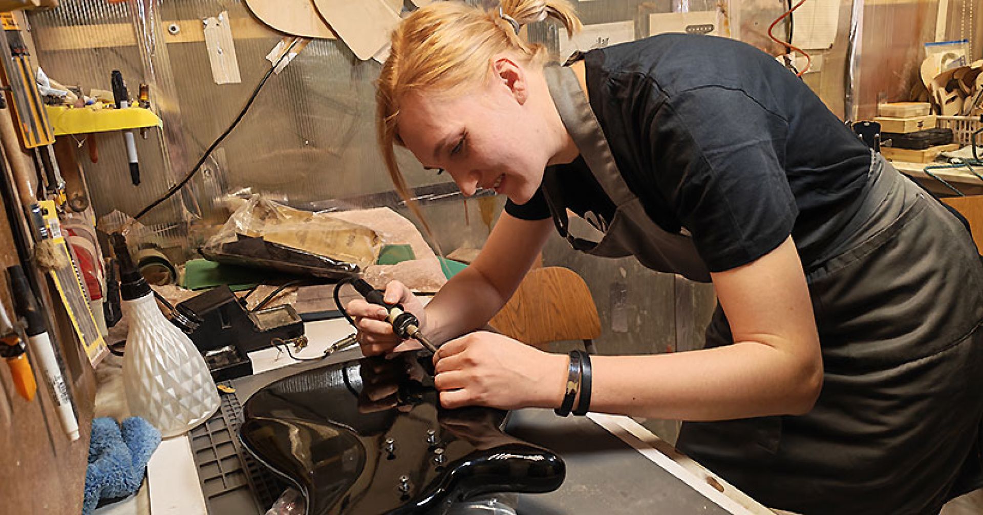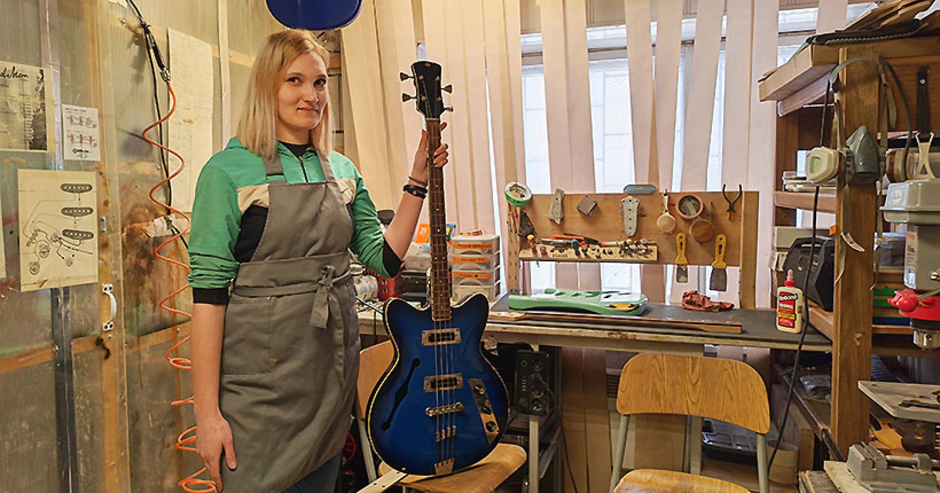 Женя по образованию художник, её муж Илья — музыкант и профессиональный маляр. Рок-тусовки, много знакомых музыкантов, наслушанность. Незаметно для себя Евгения увлеклась гитарами: стала ремонтировать, а потом и создавать корпуса и грифы. Илья приходил на помощь: объяснить по покраске, выпилить необходимую деталь. Дальше появился запрос на релик (от английского «relic» — «реликвия», то есть предмет, имеющий историческую ценность). Это искусственное состаривание инструмента, имитирующее естественный износ: трещинки, сколы, царапины, потёртости, которые создают не только особые тактильные ощущения, но и позволяют частично извлечь иной звук. В нашем регионе подобными навыками владеют редкие мастера.