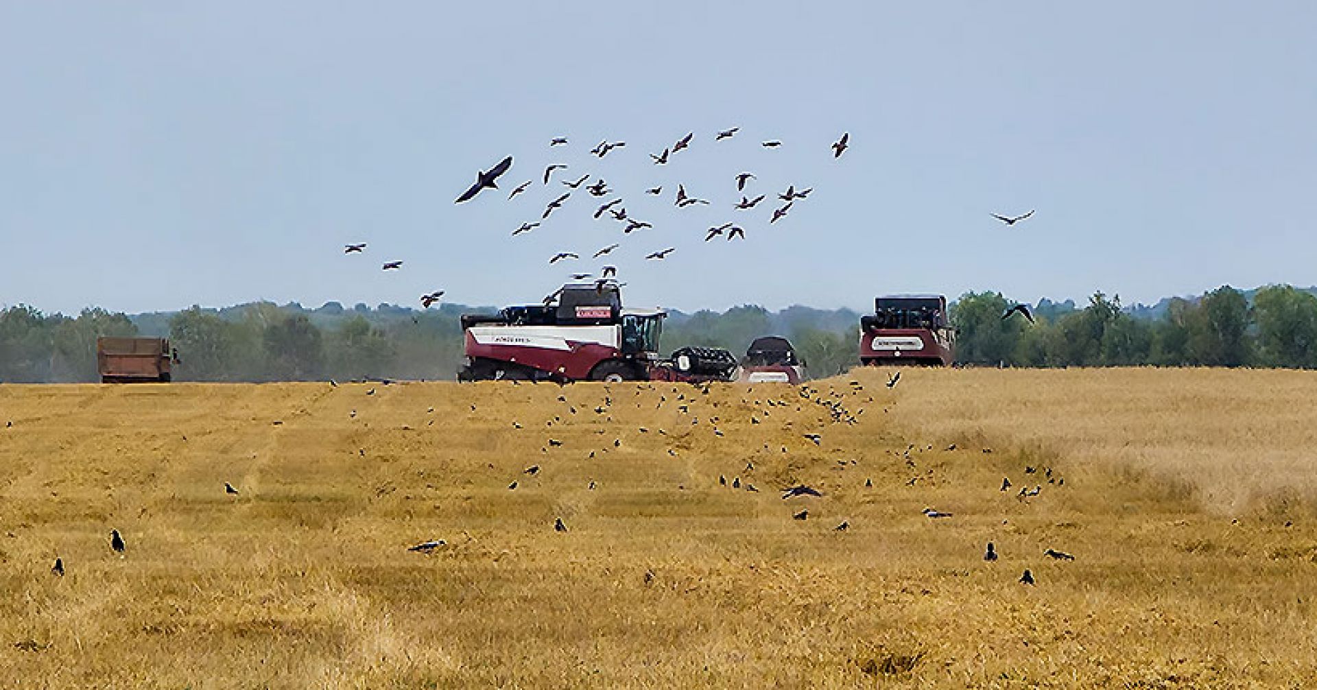 Весь август практически ежедневно идут дожди — ливневые и грозовые. «Душа болит», — говорят крестьяне, глядя на проросшие на полях валки ржи, на отяжелевшую от воды пшеницу. Но руки не опускают. Урожай должен быть собран. Комбайнёры работают даже ночью — машины сопровождают стаи галок и коршунов. Верные спутники уборочной кампании любят поживиться где мышкой, где червячком. Аграрии говорят, что галки как помогают крестьянам, так и вредят им: они завсегдатаи на токах — уничтожают вредителей, но и зерно подъедают.