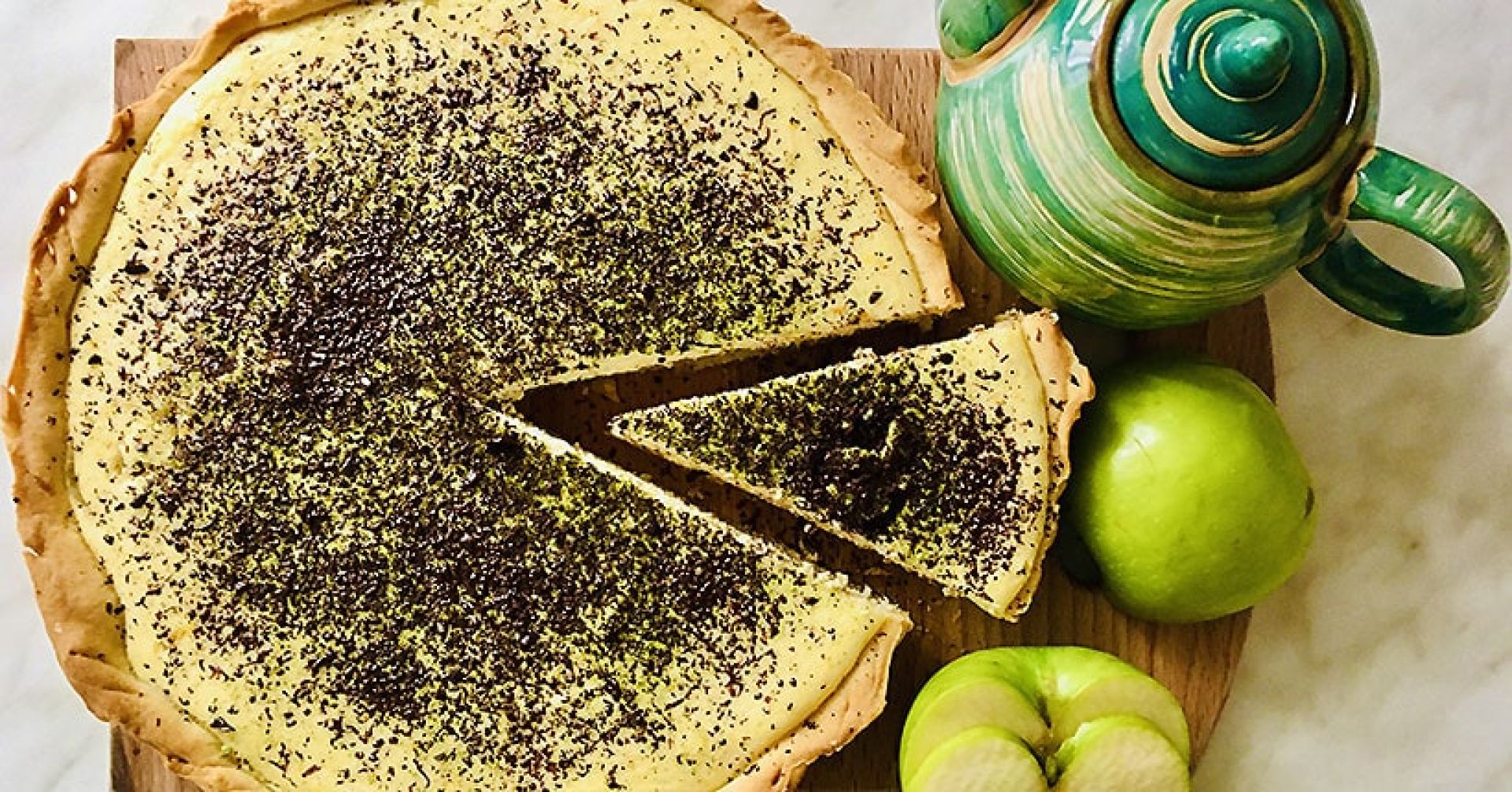 Для этого пирога прекрасно подойдёт песочное тесто. Замесите его из двух стаканов муки, половины стакана сахарного песка, 200 граммов сливочного масла, соли на кончике ножа и трёх желтков. Тесто раскатайте, выложите в форму и на 5 минут поставьте в предварительно нагретую духовку. Яблоки твёрдых сортов нарежьте пластинками и бланшируйте минуту в кипящей воде. Уложите слой яблок на тесто (предварительно откиньте на дуршлаг, чтобы стекла лишняя жидкость), по желанию можно посыпать корицей. Залейте кремом из сметаны, взбитой с сахаром (количество сметаны можно варьировать по желанию, так же как и количество сахара), и вновь убирайте форму в духовку на 20 минут. Нежный и ароматный пирог готов!