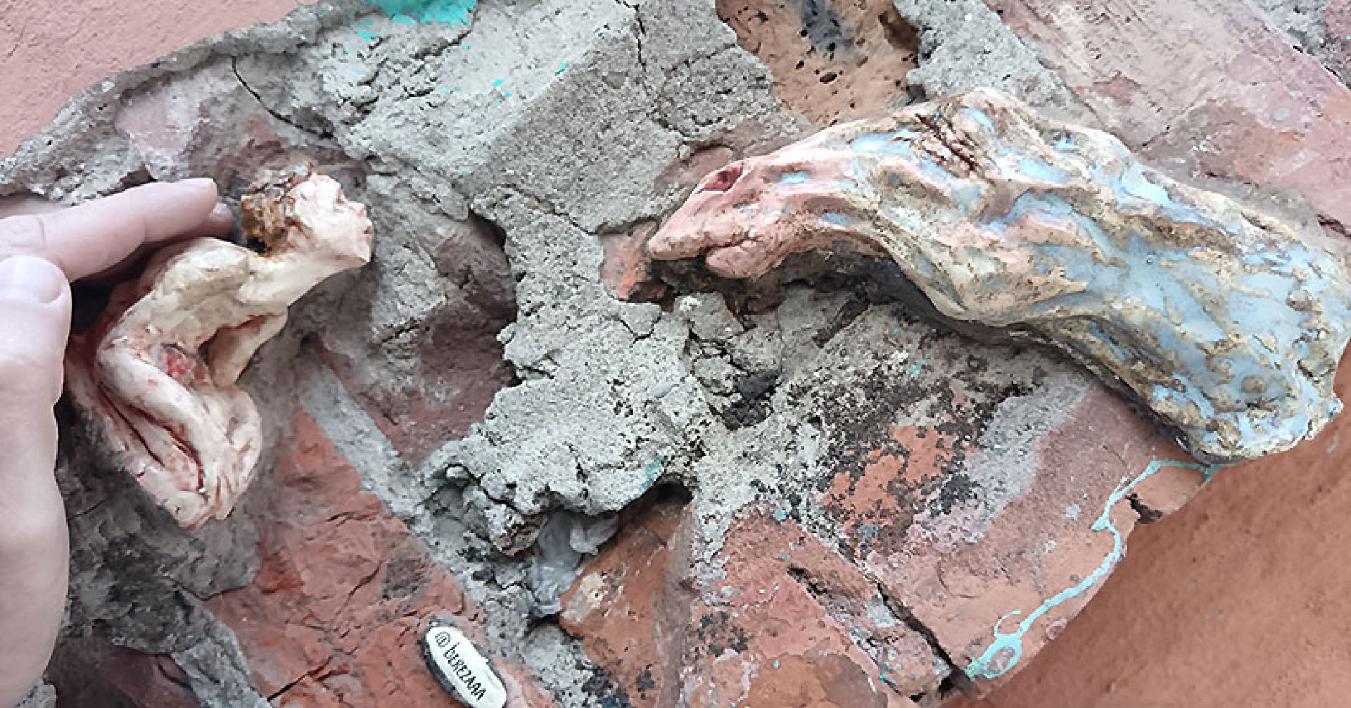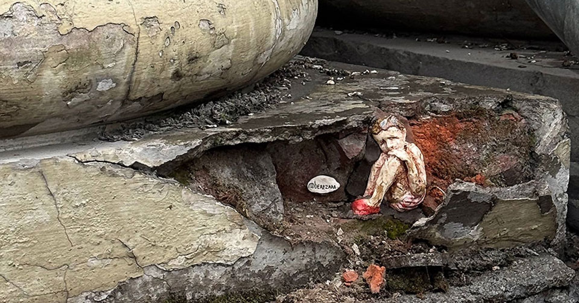 «География моих уличных скульптур расширилась. Я была в Новосибирске на гастролях с театром и, конечно, не могла пройти мимо здешних трещин и ран домов. Мы играли спектакль. И вот, собственно, скульптуры теперь тоже играют своего рода спектакль для тех, чей зоркий глаз и сердце коснётся их немого присутствия. Услышит в них ответы или вопросы, узрит неслышимую музыку жизни. И, быть может, заглянет в свои собственные заброшенные трещинки души и перестанет их избегать, а совершит смелость дотронуться до них светом и любовью, чтобы залечить…», — написала актриса и художница в своих социальных сетях.